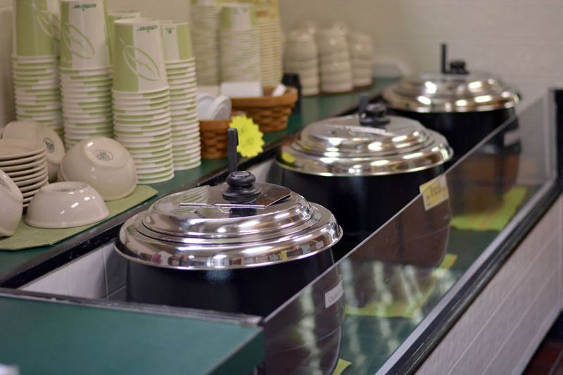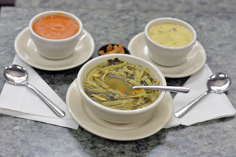 We make most of our soups from scratch. Soups are always popular here no matter what season it is. We have our chicken noodle and red pepper daily and add a soup of the day each weekday.