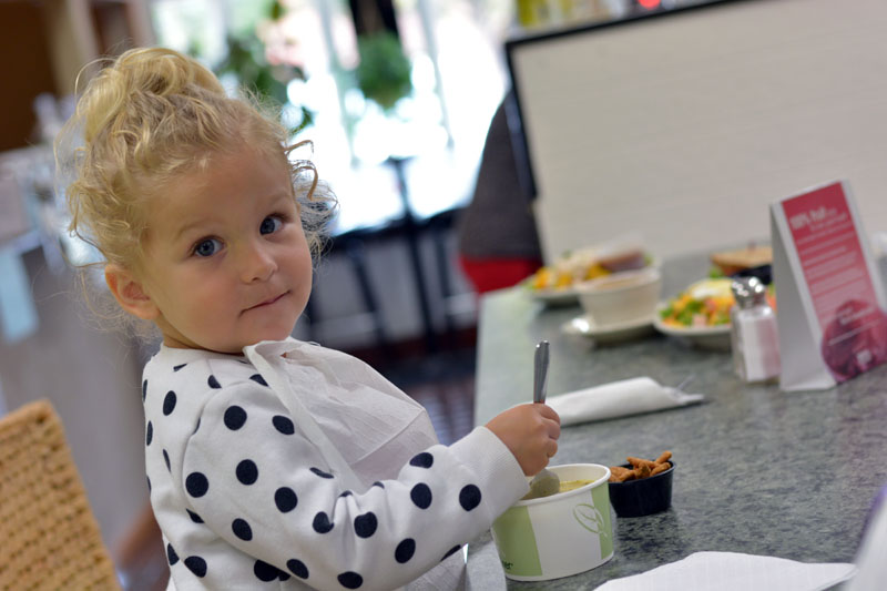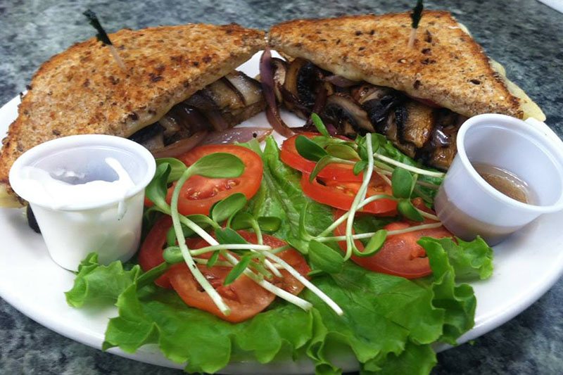 Our salads are made with leaf lettuce / mixed greens. Never iceberg lettuce. We make our salads to order. Our salad dressings have no high fructose corn syrup! We use coconut oil on all of our grilled sandwiches unless butter is requested.