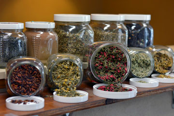 One of the favorites for winter is the Warming Crimson. The ingredients to this bulk tea are cranberry, hibiscus, cayenne, and chilies. It is not as spicy as you think. You get the berry with a bite!